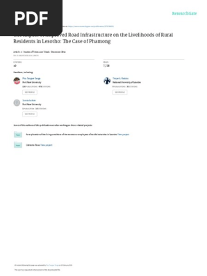 The Impact Of Improved Road Infrastructure On The Livelihoods Of Rural Residents In Lesotho The Case Of Phamong Pdf Poverty Reduction Poverty